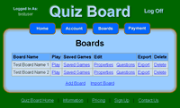 Web browser requirements will vary. Most current browsers should work fine for use with Quiz Board. Quiz Board has been tested to work properly in Internet Explorer 6+, Netscape 7+, and Firefox